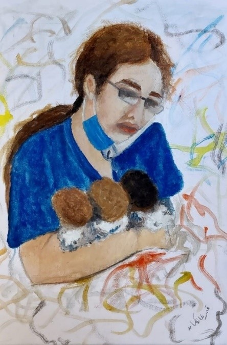 Others expressed their love for Lebanon through art. Amar Khankan drew what she described to be a very touching moment for her: an image of a nurse cradling three newborn babies at a Beirut maternity ward ripped apart by the blast. “To me, the heroic nurse symbolizes Beirut rushing to embrace the vulnerable in their times of need,” explained Amar.
