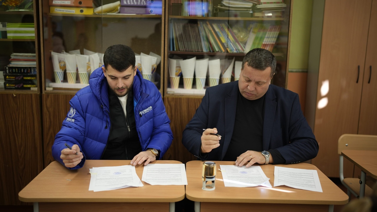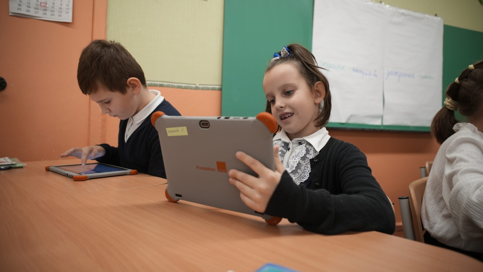 The "Gloria" Theoretical High School in Chisinau is a successful model of digitalization. Here, 1 100 students, including 55 refugee children, benefit from modern technology to carry out their studies. The institution recently received three digital education kits from UNHCR and the Orange Foundation and is one of 30 beneficiary schools. The kits include tablets, an educational server, a projector and other equipment that supports both teaching and learning.