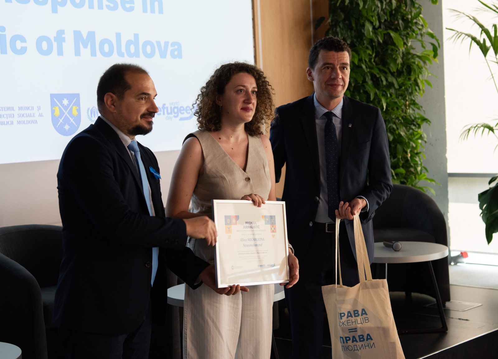 The event also honored outstanding journalistic coverage of refugee issues, emphasizing the importance media in raising awareness about social issues. Out of 29 submissions, three finalists were recognized: Tatiana Beghiu from Moldova.org for "Bohodara wants to go home," Alina Mikhalkina from Newsmaker.md for "Running away from guns. How men who don't want to fight get from Ukraine to Moldova," and Eugenia Apostu from Radio Free Europe Moldova for "Ukrainian para powerlifting champion, refugee in Chișinău."