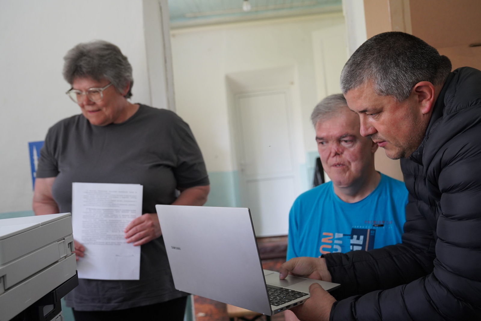Deoarece nu au putut vizita un centru de înregistrare, o unitate mobilă a guvernului a venit la centrul lor de cazare pentru a-i ajuta să se înregistreze.