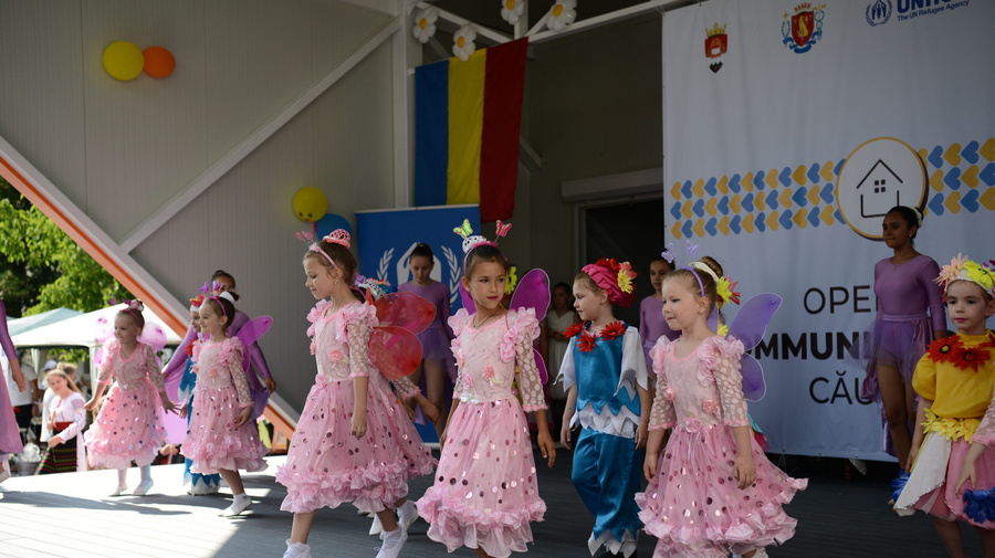 Copiii care au participat cu dansuri și cântece la ceremonia de deschidere a Centrului Comunitar din Căușeni. UNHCR sprijină 10 centre comunitare în Republica Moldova.