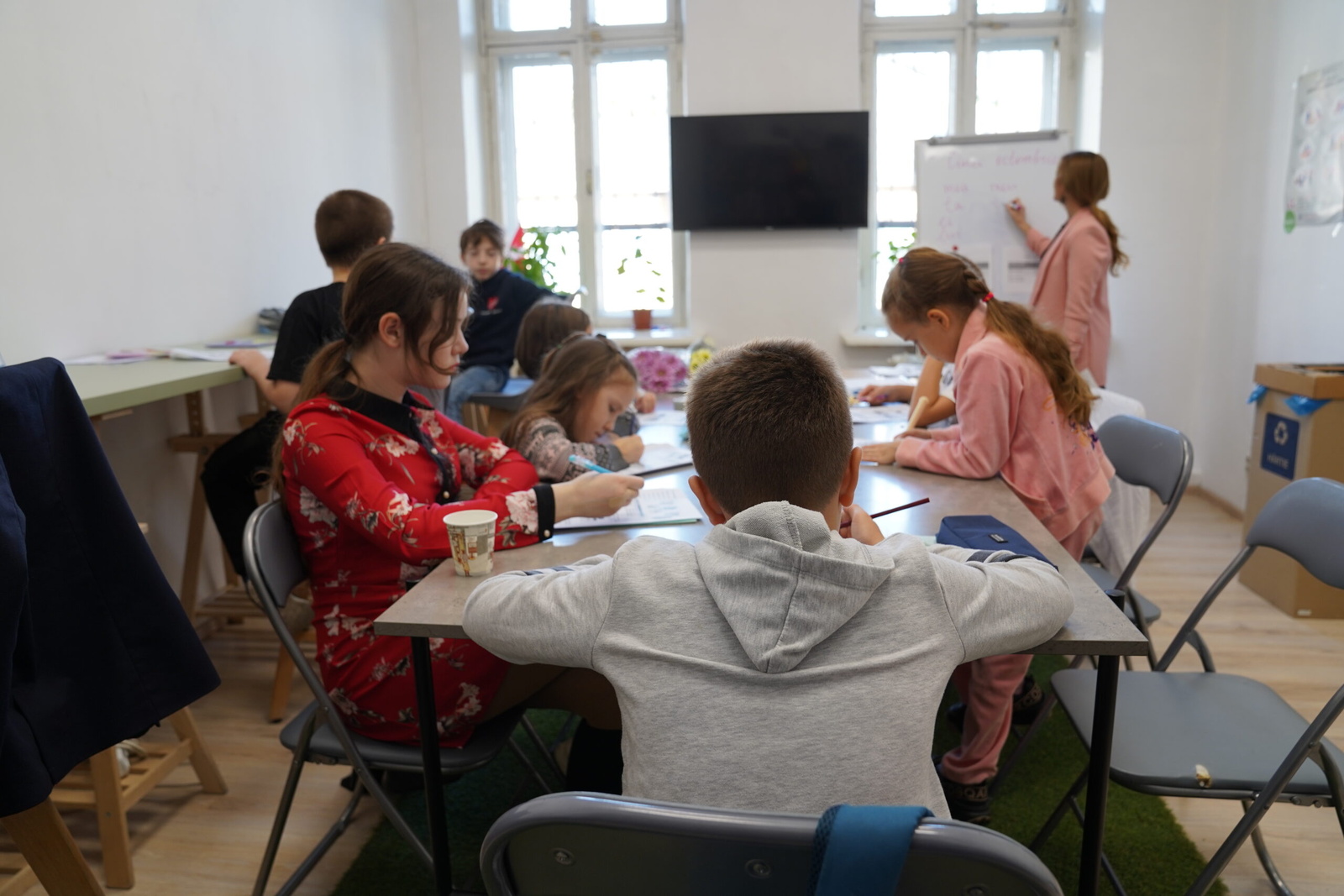 Copiii cu vârste cuprinse între 8 și 10 ani participă la orele de română de două ori pe săptămână cu Natalia, care spune că se simte minunat când îi învață. Este, de asemenea, o experiență nouă, deoarece majoritatea copiilor sunt din Ucraina și învață limba română de la zero.