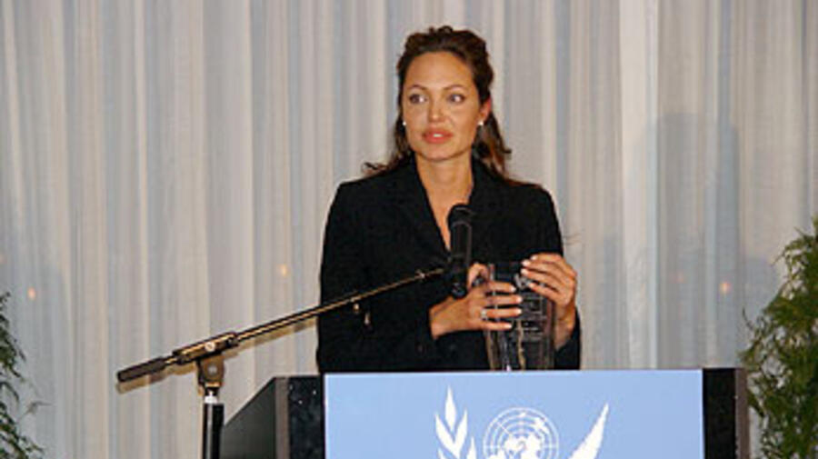 UNHCR Goodwill Ambassador Angelina Jolie thanks the UN Correspondents Association on receiving her award