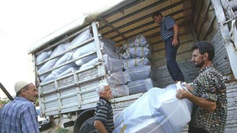 Returnees unloading return kits in Tetovo, former Yugoslav Republic of Macedonia. UNHCR has helped 6,000 returnee families rebuild their homes.