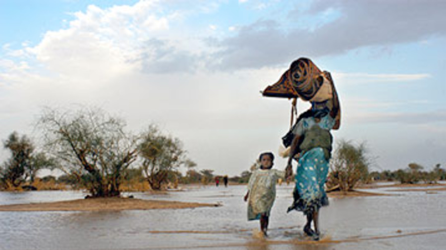 In a sign of the approaching rainy season, a mix of heavy rains and sandstorms struck Bahai border town in north-eastern Chad on Wednesday. It flooded the hitherto dry river beds (wadis) where many refugees had been living since they fled fighting in western Sudan's Darfur region earlier this year. Many of the refugees had to walk through the water to drier spots, carrying their luggage on their heads.