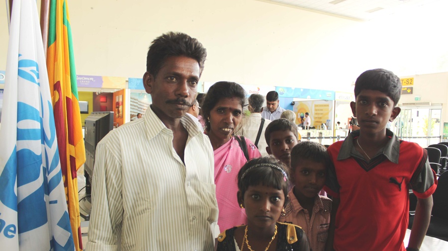 COLOMBO, Sri Lanka, July 13 (UNHCR) - Selliah Arumugam walked through the gates at the bustling Bandaranaike International Airport in Colombo, his wife and four children in tow. With a big smile on his face, the 42-year-old pushed a metal cart piled high with their belongings into the arrival lounge.