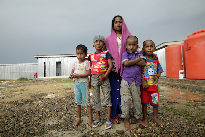 Aisha*, a Rohingya teenager born in a refugee camp in Bangladesh, stands with the four children in a temporary shelter in Aceh, Indonesia, who floated with her from the Bravo to shore in a large cooking pot guided by fellow Rohingya passengers.