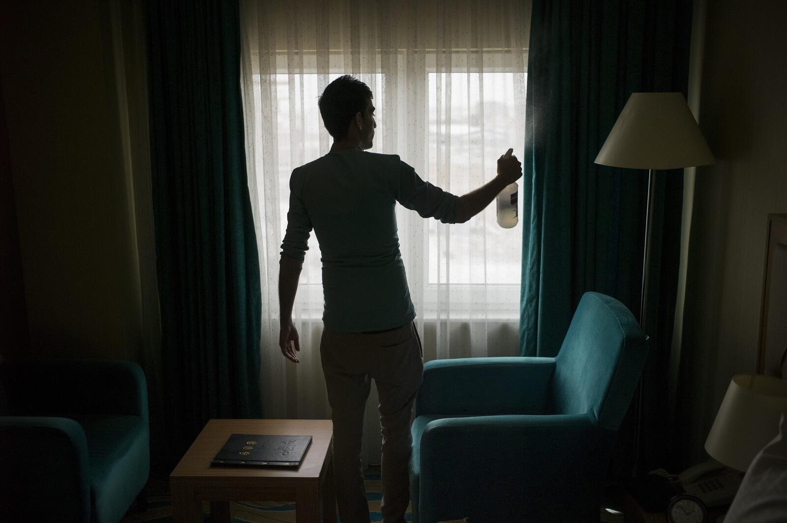 It's early afternoon and Rudy, 26, still has a few hours before his night shift begins on the front desk at a midrange hotel in Erbil, the capital of Iraq's Kurdistan region. He's wearing distressed jeans and a fitted plaid shirt and although he's not yet in uniform you can tell today's a work day; he's freshly shaven, and his hair is immaculately gelled into place.
