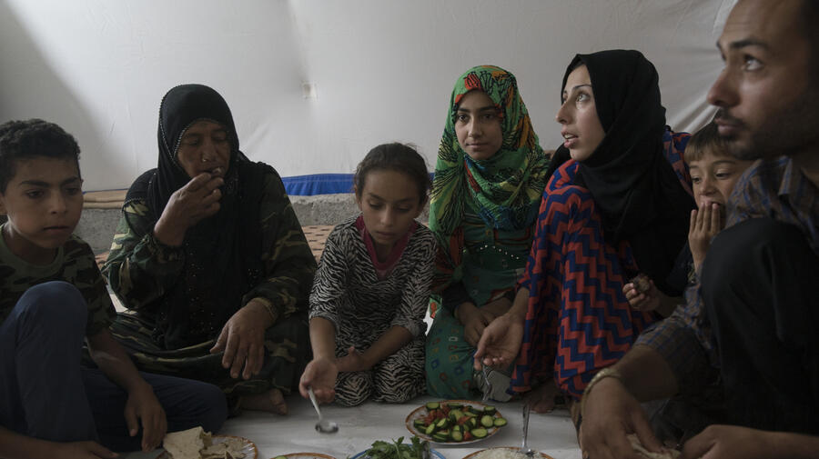 During the month of Ramadan local aid organizations partnering with UNHCR have increased food donations to families living in camps for refugees and displaced people. In Baharka camp one aid organization distributed three kilograms of chicken to each family at the start of the holy month, another provided a hot iftar meal to each of the camp's residents, but for the vast majority of Ramadan, families like Yazi's have had to fend for themselves.