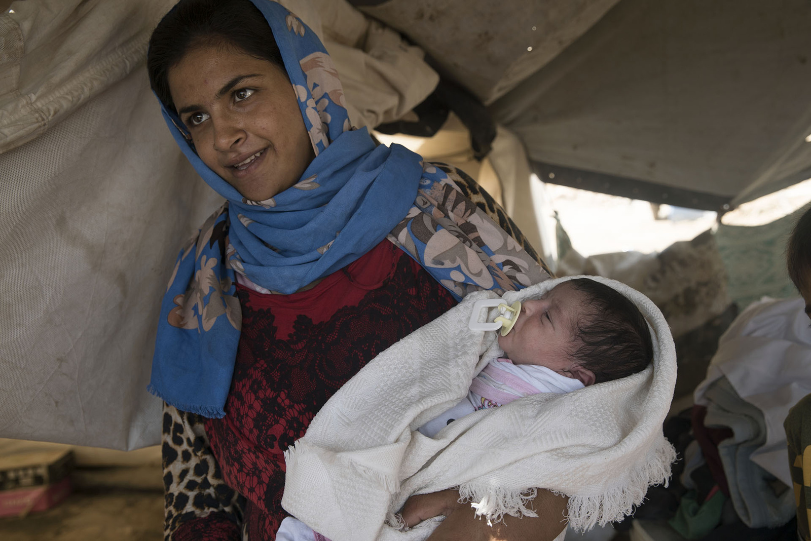 "They allowed us to cross, but we have nowhere to go," Nahla said, surrounded by some of her nine children. The camp they are sheltering in is made up of no more than 50 tents and four toilets. Families say it has been more than a week since their last food delivery, and they lack access to even basic health care services. Nahla's daughter-in-law, Abeer, 17 years old, gave birth to her first child while living in this camp and had to travel back into Anbar to reach a functioning hospital.