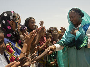 UNHCR Goodwill Ambassador Barbara Hendricks visits Sheder General Secondary School, which is open to refugees and the local youth alike. Sheder camp, eastern Ethiopia.