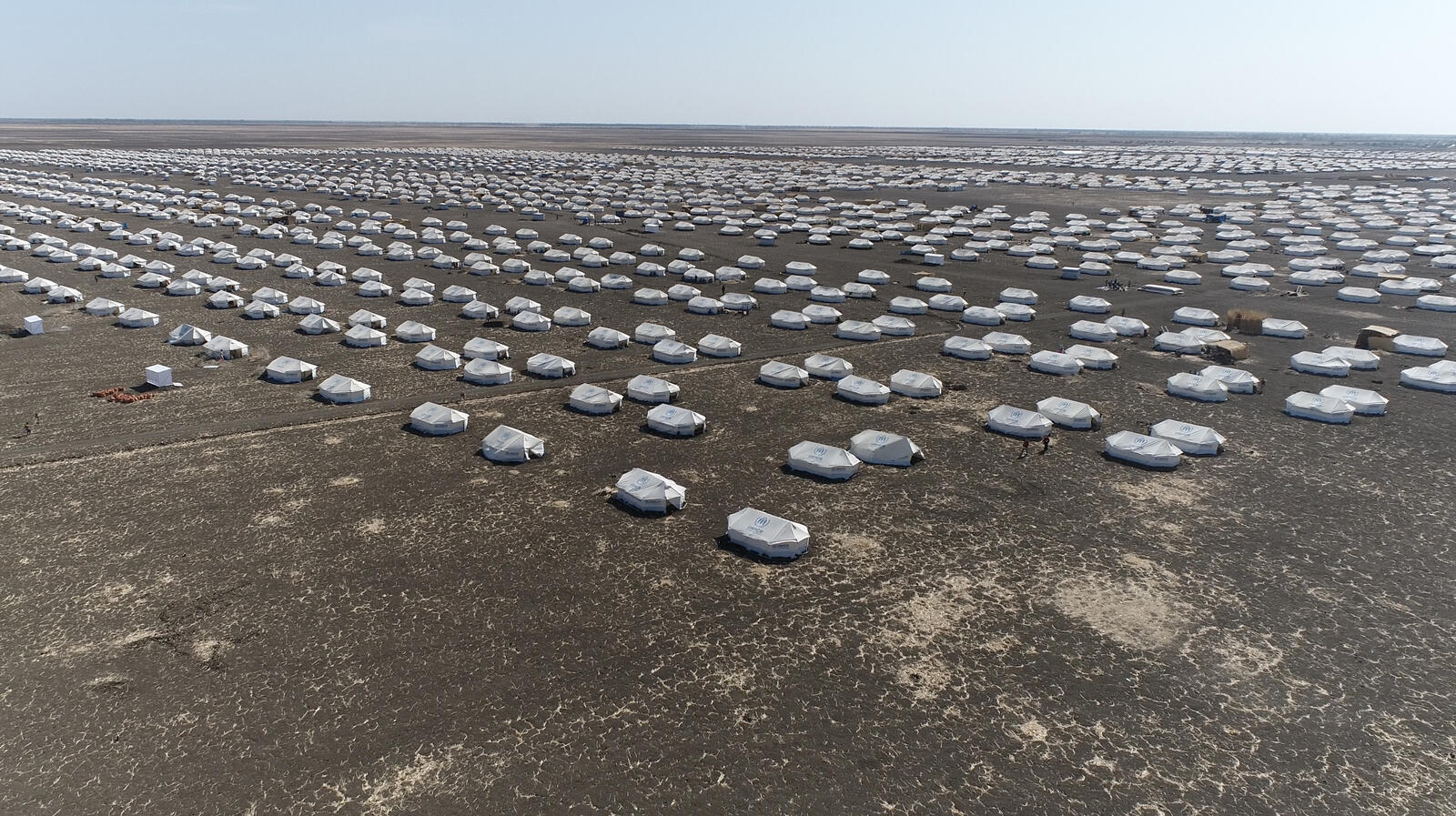 The settlement, which is in a semi-arid area where temperatures can reach as high as 45°C, was set up in January this year to cope with the influx after another settlement, Um Rakuba reached its full capacity. The flat surrounding landscape, dotted with sparse bushes and rocky outcrops, is prone to flash floods that have become more severe in recent years.