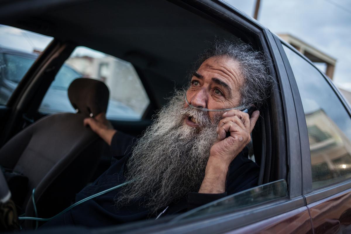 Father Efstratios Dimou – "Papa Stratis" to all and sundry – sits in the front yard of his house, surrounded by flowers in earthenware pots, a small apricot tree and his big bear-like dog, Siba. Overhead on the Greek island of Lesvos, swallows fly in and out of a nest on the wall.