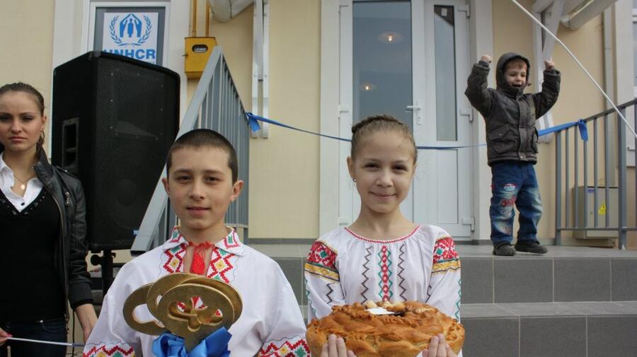 Under a joint project between UNHCR and the European UnIon, refugee families in Moldova take possession of renovated apartments.