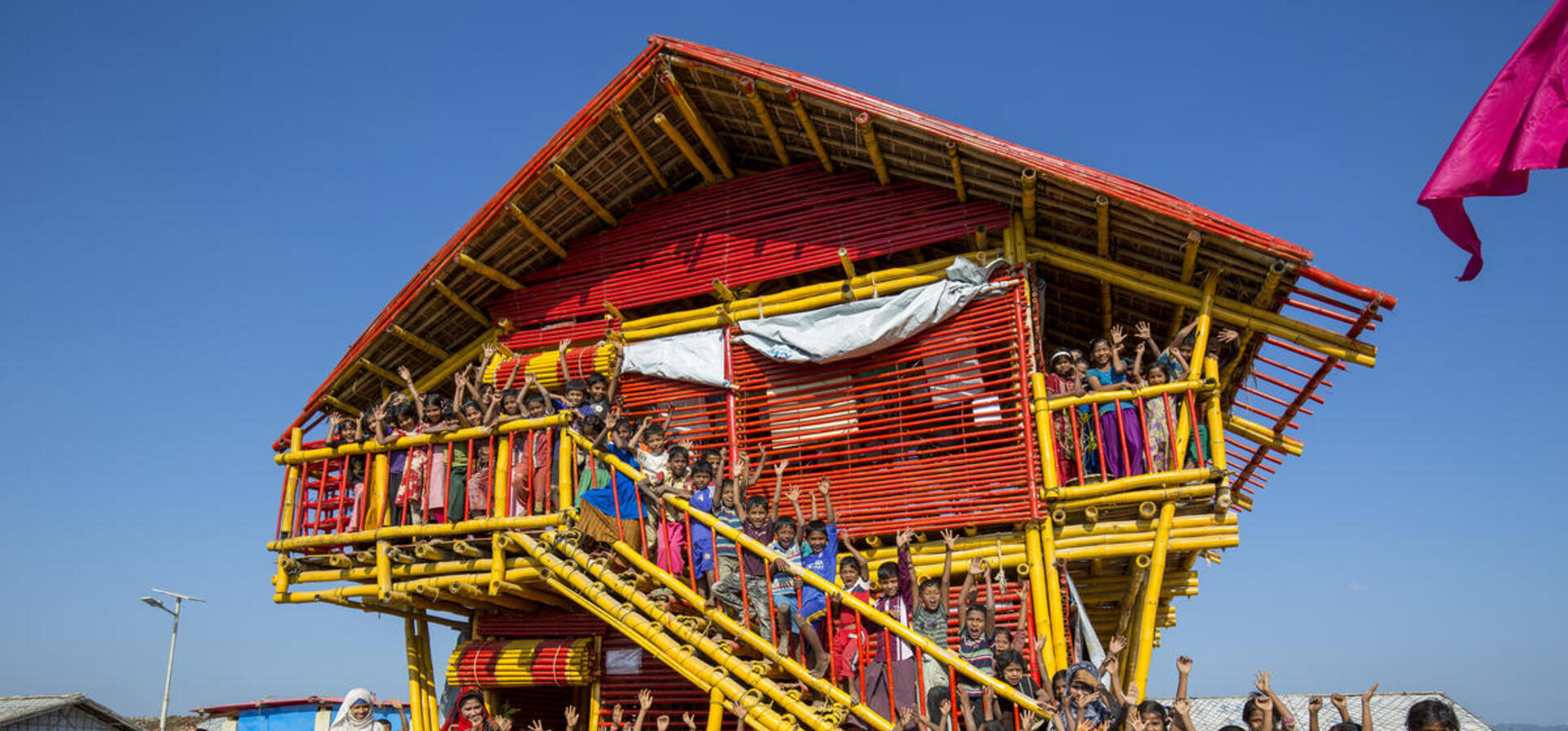 His three younger children receive a basic primary education at the Sunflower temporary learning centre, a short walk from the family’s shelter. Painted red and yellow, the centre is supported by UNHCR, the UN Refugee Agency, and run by its Bangladeshi partner, BRAC.