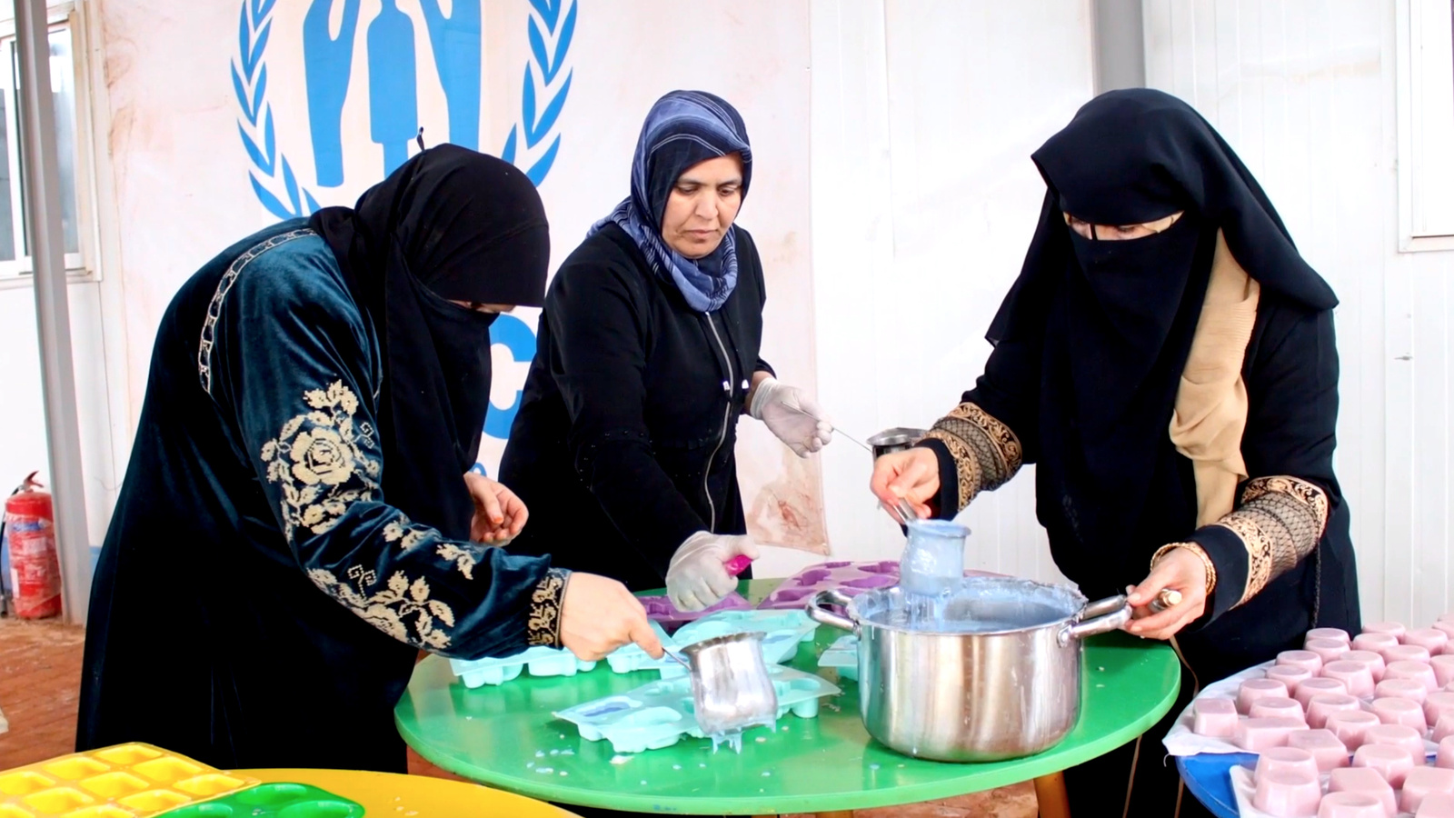 A group of refugee entrepreneurs in the camp that makes hand-crafted products for sale online and in markets has recently increased production of natural soap, and begun distributing it for free among their neighbours to help encourage hand washing.