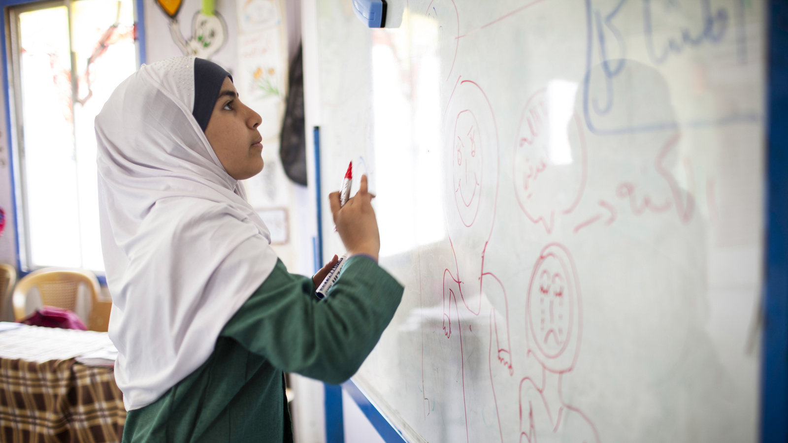 As is the case with most early marriages, Basma left school after the wedding and Omaima didn’t see her friend again. That episode made Omaima determined to try to stop the same fate befalling other girls in the camp.