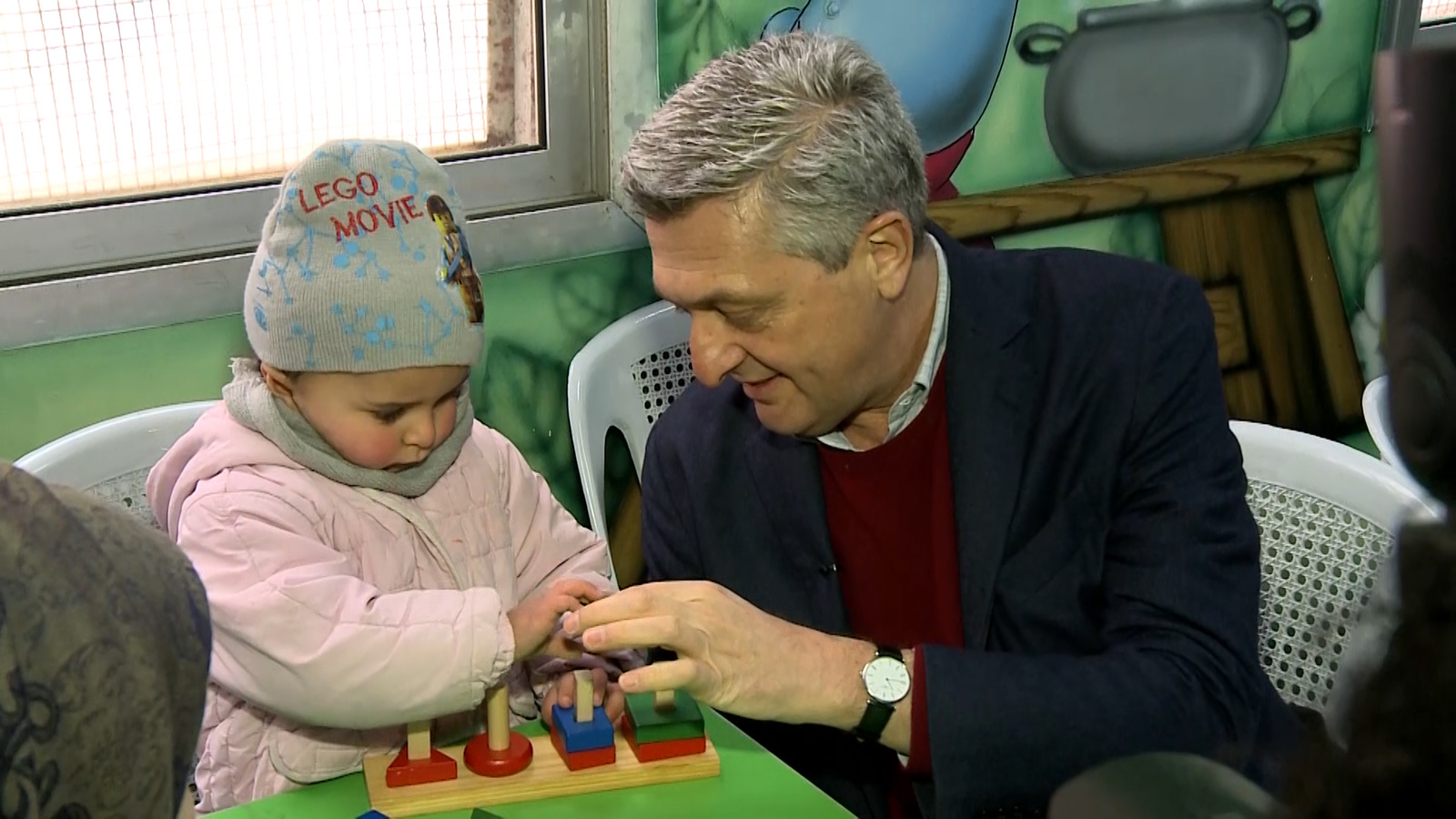 UN High Commissioner for Refugees Filippo Grandi pictured with displaced children in one of UNHCR Community Centers in Al-Midan neighborhood, Homs, Syria.