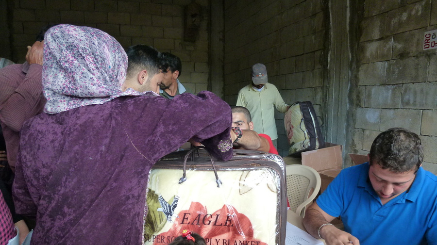 Distribution of extra blankets to refugees in Lebanon for protection against the cold.
