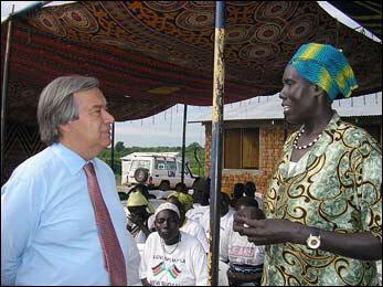High Commissioner António Guterres talks to a returnee in Juba, South Sudan.