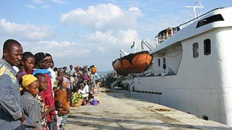 The MV Overbeck in Freetown, Sierra Leone, pending approval to sail to Monrovia with UNHCR staff and relief supplies.