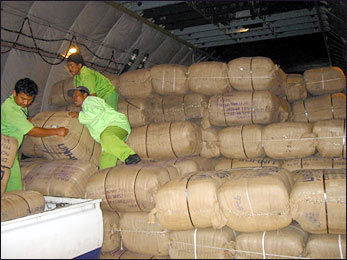 Offloading UNHCR's relief supplies in Jakarta for onward airlift to Aceh.