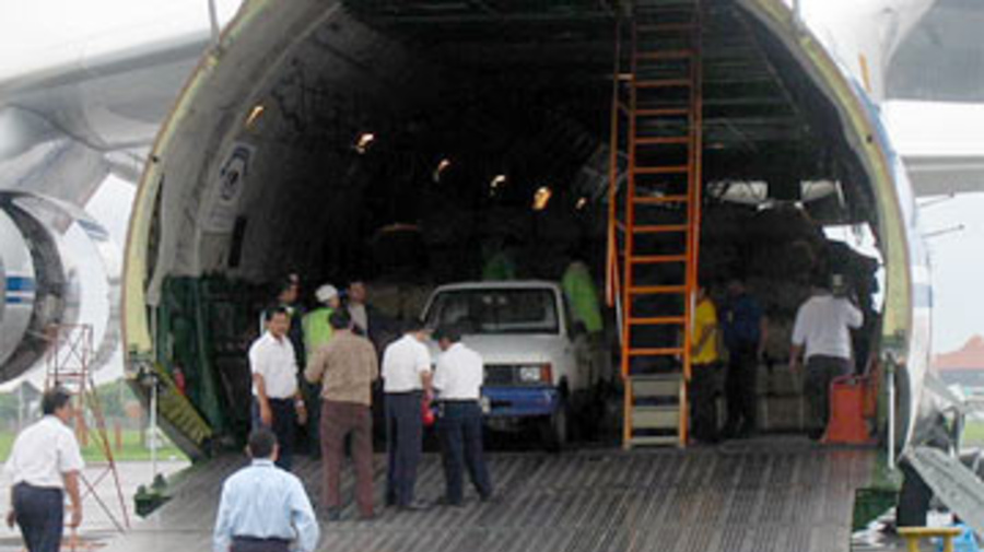 UNHCR's relief flights are starting to land in Jakarta as further flights in Amsterdam and Frankfurt are loading up supplies for Indonesia. An Antonov 124 carrying 100 tonnes of relief supplies from UNHCR's central warehouse in Copenhagen landed in Jakarta today and a flight from Dubai loaded with 2,000 family-sized tents was also due in late Tuesday. Shortly after midnight Wednesday, another emergency relief flight is scheduled to depart from Amsterdam carrying 102 tonnes of blankets and plastic sheeting from UNHCR's central warehouse.