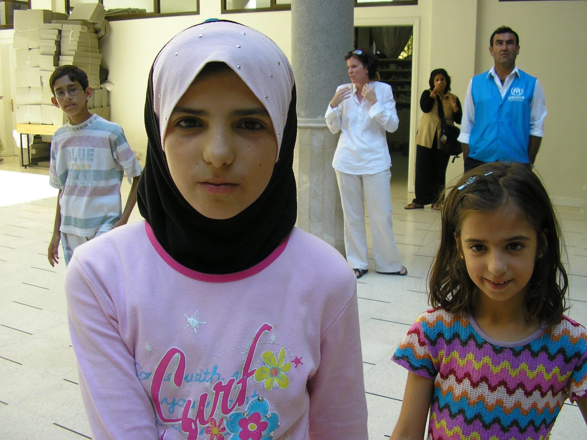 These young girls were sent to Syria with relatives, while their parents stayed in southern Lebanon to watch over their now-destroyed house, Al-Shariya high school, southern Damascus.