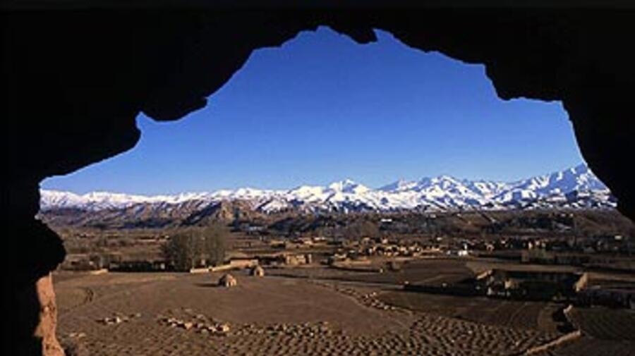 The view of the Bamiyan plain from the caves which shelter uprooted Afghans.