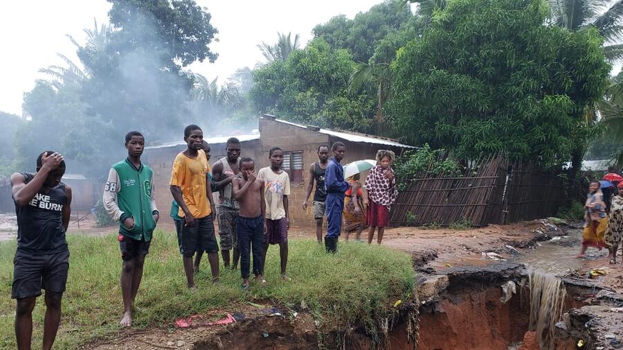 Residents survey flooding in Pemba after Cyclone Kenneth hit Mozambique.
