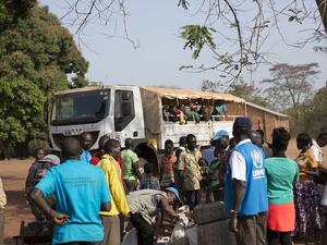 UNHCR is concerned about the refugees' safety in Elfoj due to their proximity to the volatile border. Since 19 May, we have bussed and trucked several thousand of them to our new camp, Yusuf Batil. The remainder have been relocated some 30 kilometres from Elfoj to a transit site called Rum, where we provide emergency assistance before onward travel to Yusuf Batil. The most vulnerable refugees have been taken by tractor-pulled trailers as road conditions deteriorate in the rainy season in the border area.