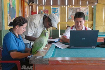 In a makeshift office improvised by setting up a laptop computer on a pool table, the team set to work under the watchful eye of the local parrot. Some 75 people were registered on that day, most of them after years in Ecuador - like 47-year-old Patricia, who arrived twelve years ago and has since had two more children whose births have not been officially registered in either country.