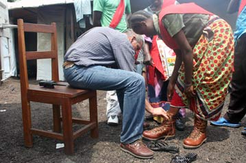 BUHIMBA, Democratic Republic of the Congo, March 5 (UNHCR) - Kioma Kanyere proudly shows off the pair of second-hand boots she has just received from the UN refugee agency. They will be essential in her new job helping to police the community at this camp for displaced people near Goma, capital of North Kivu province in eastern Democratic Republic of the Congo.