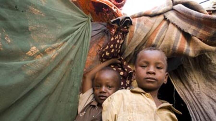 Children at a camp for internally displaced people in Galkayo. Somalis are returning home to work in non-governmental organizations in Galkayo, including those helping the displaced.