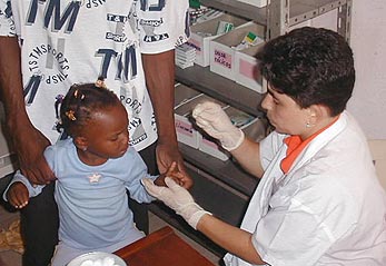 A young Colombian gets her blood type tested for her cédula.