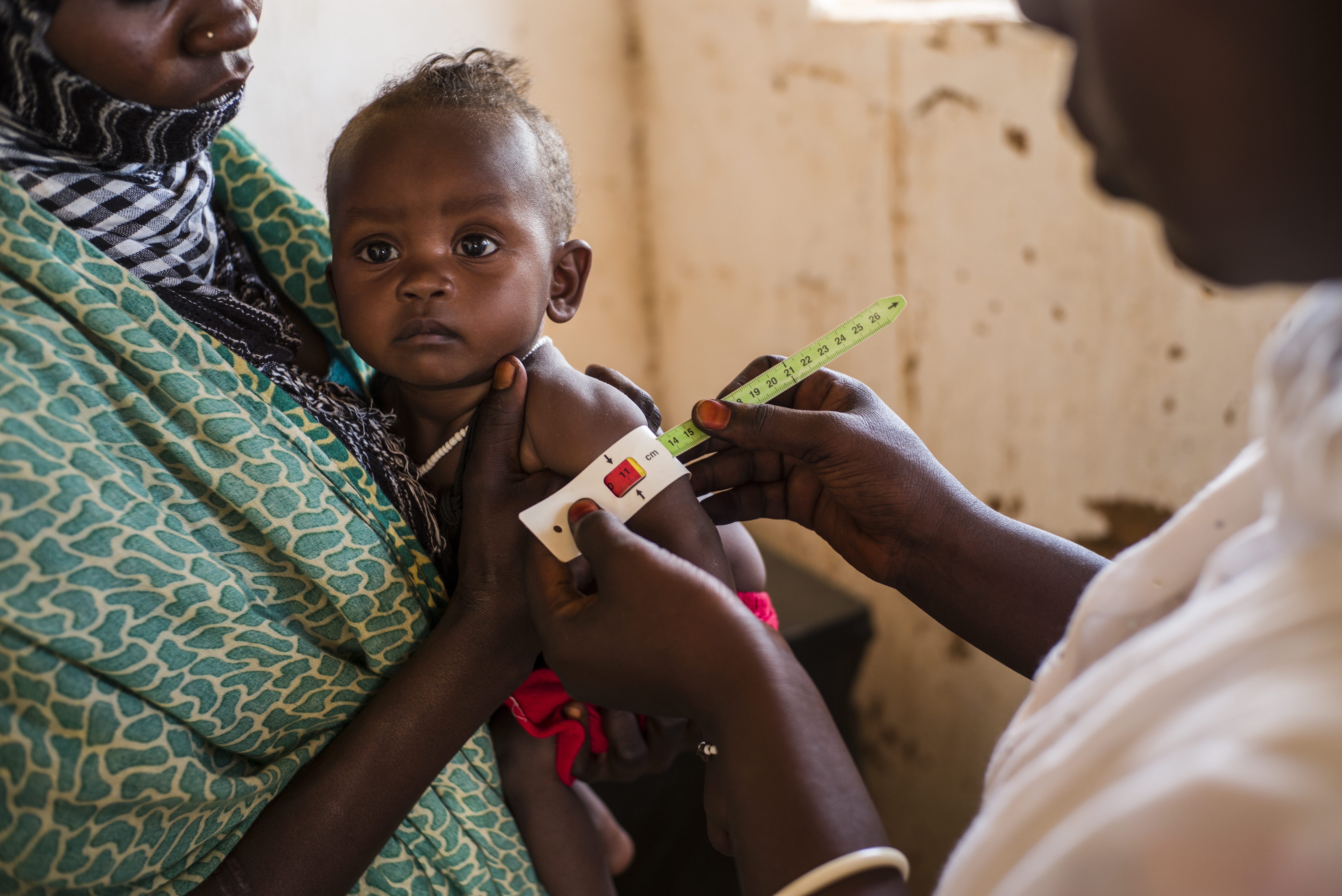 A young Sudanese refugee's arm is measured at the nutrition centre in Iridimi refugee camp, Chad. The malnutrition rate in Iridimi camp for children aged under five is 13.7 per cent.