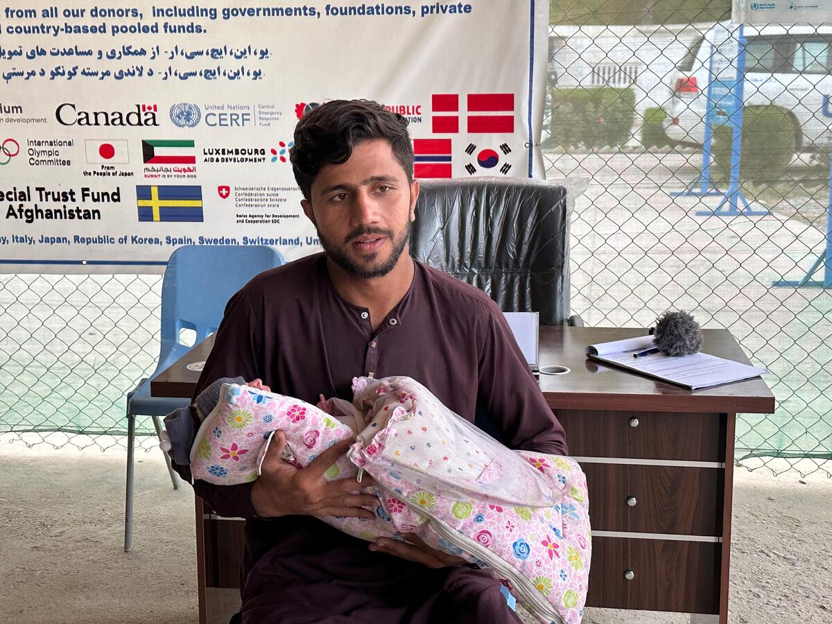 Abdul with his 28-day-old son at a UNHCR centre in Samarkhel, Nangarhar.