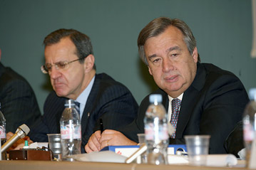 High Commissioner António Guterres (right) addresses the Dialogue on Protection Challenges.