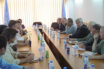High Commissioner Ruud Lubbers (centre right) meets officials from various U.N. agencies in the northern Iraq city of Sulaymaniyah on Friday.