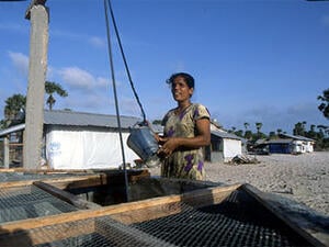 With a mandate for protecting refugees fleeing violence and persecution, UNHCR does not normally respond to natural disasters and its programme in Aceh was unprecedented. Given the enormity of the tsunami crisis, it was asked to join the United Nations emergency response effort and quickly mounted a programme to help provide shelter and other assistance to some 100,000 people along Aceh's devastated west coast. It deployed mobile teams to temporary field locations in Medan, Banda Aceh, Meulaboh, Calang and Lamno. Swiss helicopters and sea transport provided by the Indonesian Army were used to transport lightweight tents, plastic sheeting, jerry cans, kitchen sets, blankets and locally produced plastic sleeping mats. UNHCR also developed a strategy to support early return and the provision of permanent housing units to the affected population in some of the smaller coastal communities.