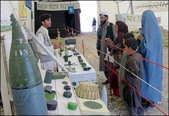 Instruction is given to newly returned refugees on the dangers of the mines and unexploded ordnance dotting the landscape of Afghanistan.