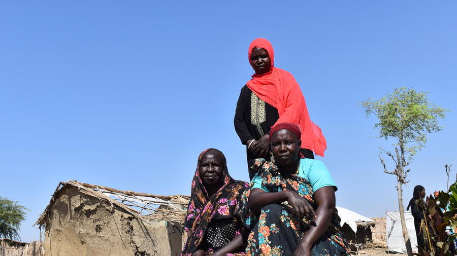 South Sudanese refugees Suzanna, Nyalan and Triza all lost their shelters to floods that hit their camp in Sudan's White Nile State in November 2022.