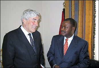 UN refugee agency chief Ruud Lubbers with the Angolan Foreign Minister, Joao Bernardo de Miranda, in Luanda.
