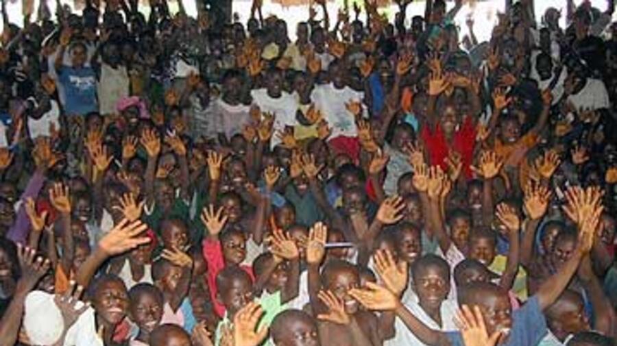 Excited children were among the Liberian refugees who flocked to watch the UNHCR documentary, "Return to Liberia", in Sierra Leone's Jimmy Bagbo camp.