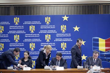 The signing ceremony in Bucharest. Vincent Cochetel, Deputy Director of UNHCR's Division of International Protection Services, is on the right.