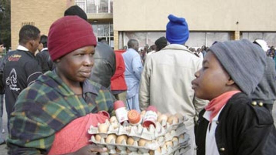 A Zimbabwean refugee sells hard-boiled eggs to hundreds of asylum seekers at the Refugee Reception Office in Pretoria.