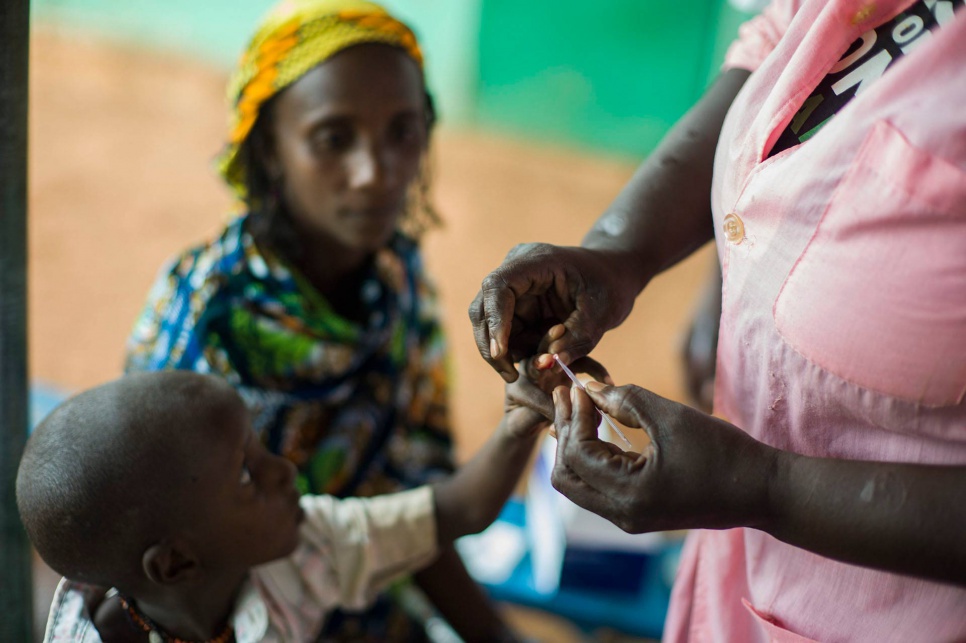 A young refugee from CAR is tested for malaria at the health centre in Dosseye camp. The food shortage affects malaria patients, who need an adequate diet for a full recovery. © UNHCR/Corentin Fohlen