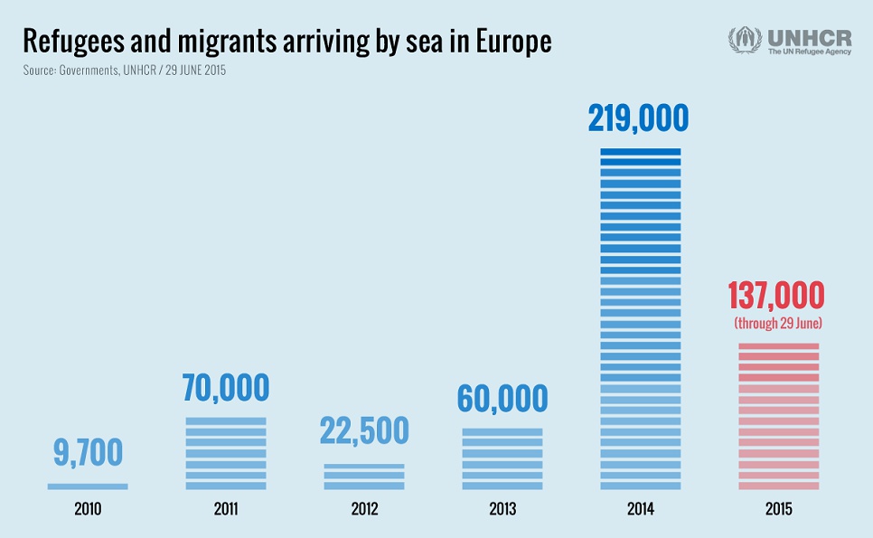 Historically, crossings significantly increase in the second half of the year, in particular over the summer months, so it is expected that the numbers will continue to soar. Arrivals in the second half of 2014 were almost double those of the first half.