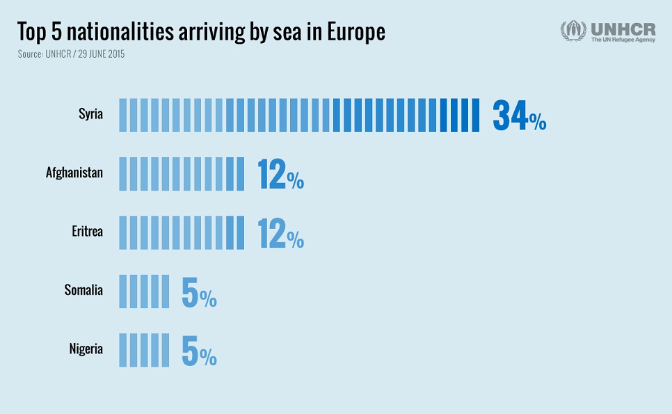 The report found that one third of the 137,000 men, women and children who arrived by sea in Italy or Greece were from Syria, whose nationals are almost universally deemed to qualify for refugee status or other forms of protection.