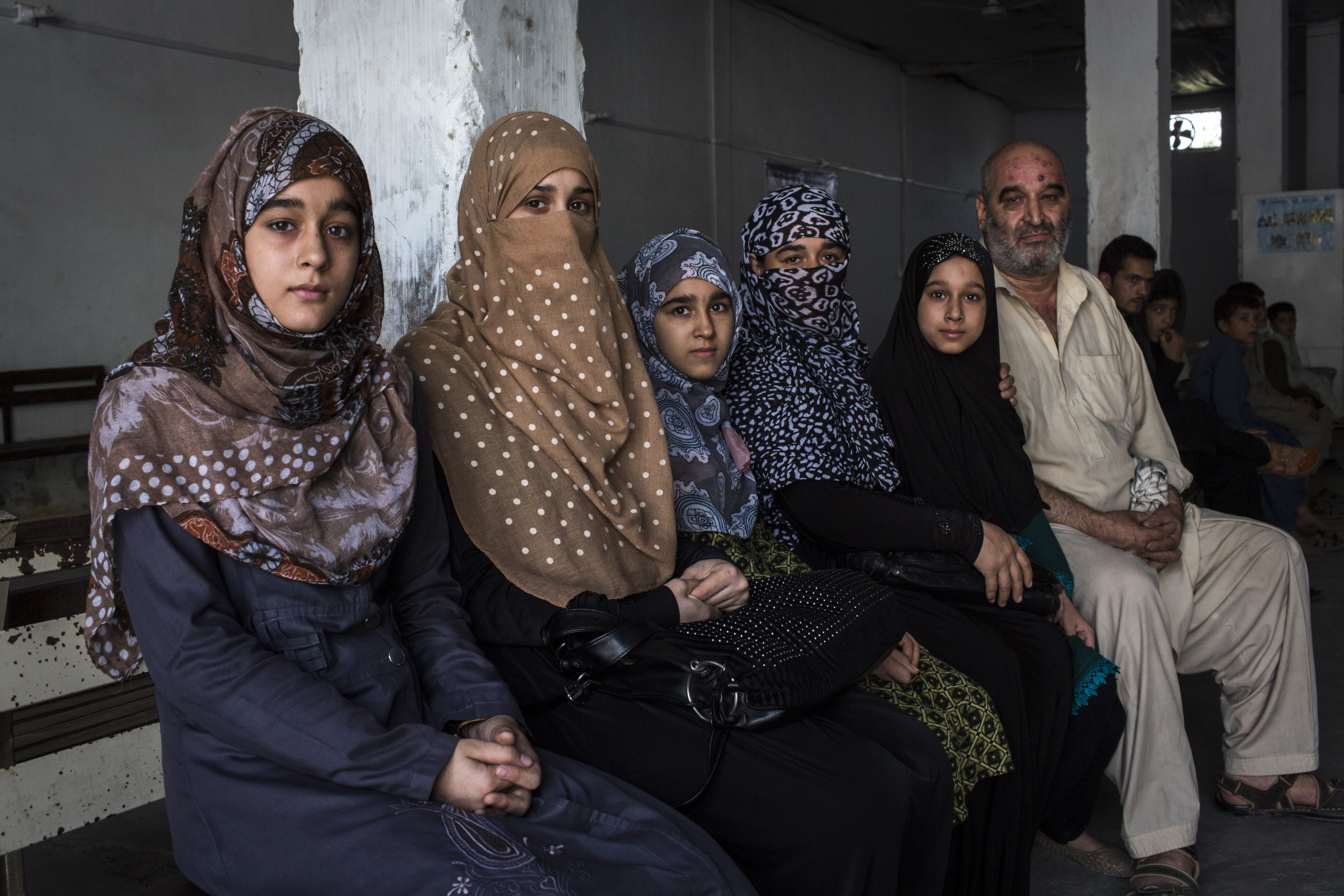 Shazia Razi (second from left) and Abdul Razi (right) sit with their four children at a UNHCR voluntary repatriation centre in Peshawar, Pakistan. They are making arrangements to return home to Afghanistan after decades in exile.